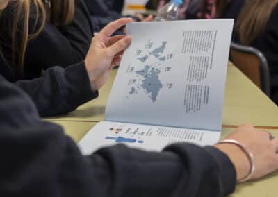 A continuación, cada grupo representante de un país comenzó a trabajar con el cuaderno didáctico elaborado con motivo de este proyecto para extraer información que les ayudase a completar su presentación en la sesión parlamentaria y darse a conocer al resto de compañeros que representaban otros países con otros roles diferentes.