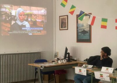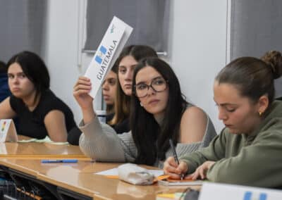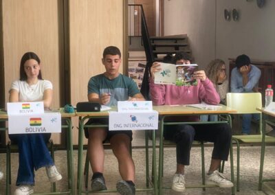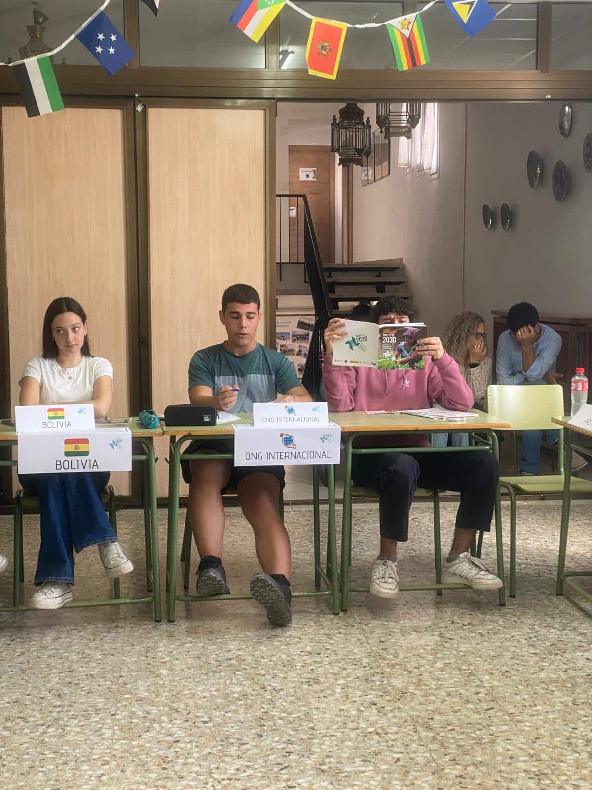 Una vez que todo el alumnado tenía su presentación preparada, comenzaron la ronda de intervenciones de Palestina, Guatemala, Bolivia, Etiopía y España. A continuación, intervinieron los roles de ONG Internacional, Naciones Unidas, Comunidad Rural y Gobierno Local.
