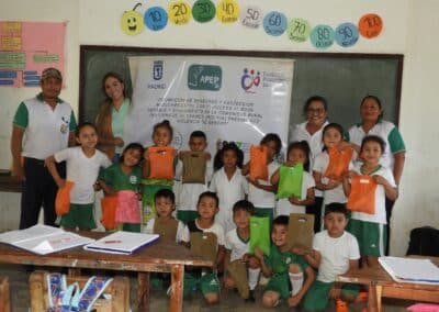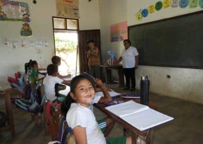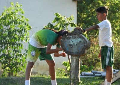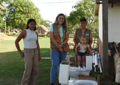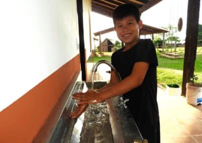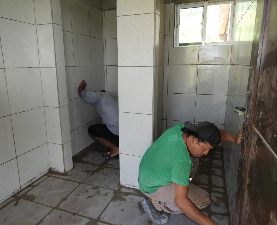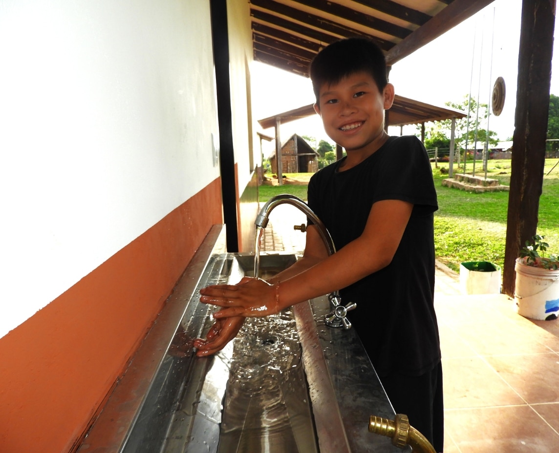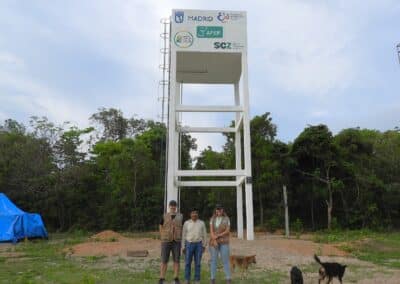 Así, las acciones relacionadas con la construcción de infraestructuras prácticamente han concluido. Entre ellas, destacan la edificación de un tanque elevado de hormigón armado (con capacidad de 30.000 litros) y la construcción y acondicionamiento de cuartos de baños en los centros educativos de esta comunidad.