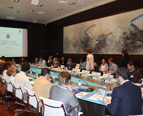 Ms. Hala Mustafa, Journalist of Al Ahram and previous head editor of the Democracy Review Jornal, in Egypt; Mr. Nadim Shehadi, the Investigator at Chatham House, visiting professor at St Antony’s College (Oxford) and the member of the Advisory Committee of CEMOFPSC; and Mr. Isaac Martin-Barbero, the General Director of the Internationalization of the Spanish Institute for Foreign Trade (ICEX), of the Ministry of Economy and Finance. Mr. Martin-Barbero was in charge of moderating the third session in which the roles of Spain, the Arab countries and the European countries in general were discussed.
