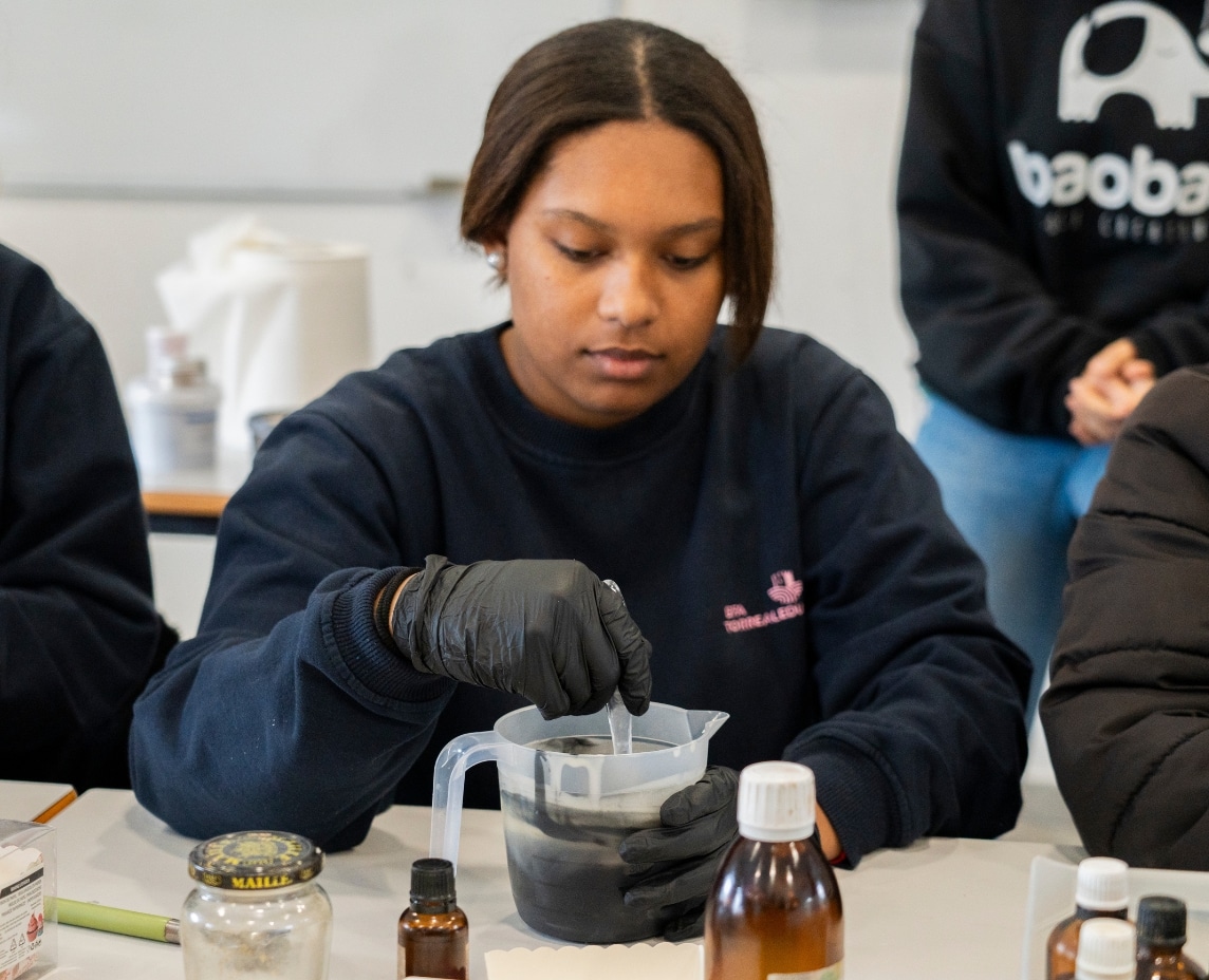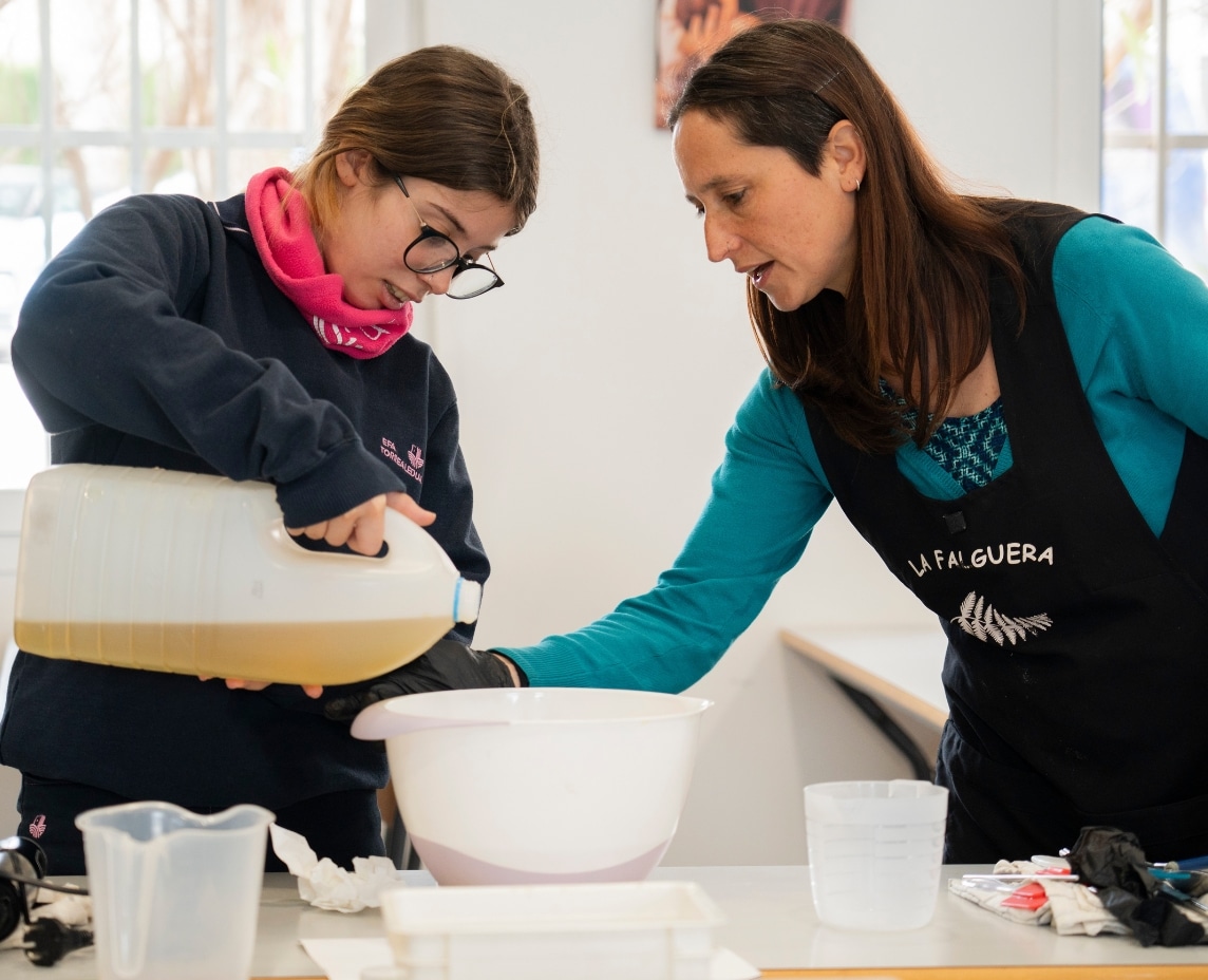 A continuación, han aprendido técnicas básicas de elaboración de jabones artesanales, utilizando ingredientes naturales y aplicando procesos responsables con el medio ambiente, con el fin de fomentar un consumo responsable y reducir los residuos mediante alternativas sostenibles a productos industriales.