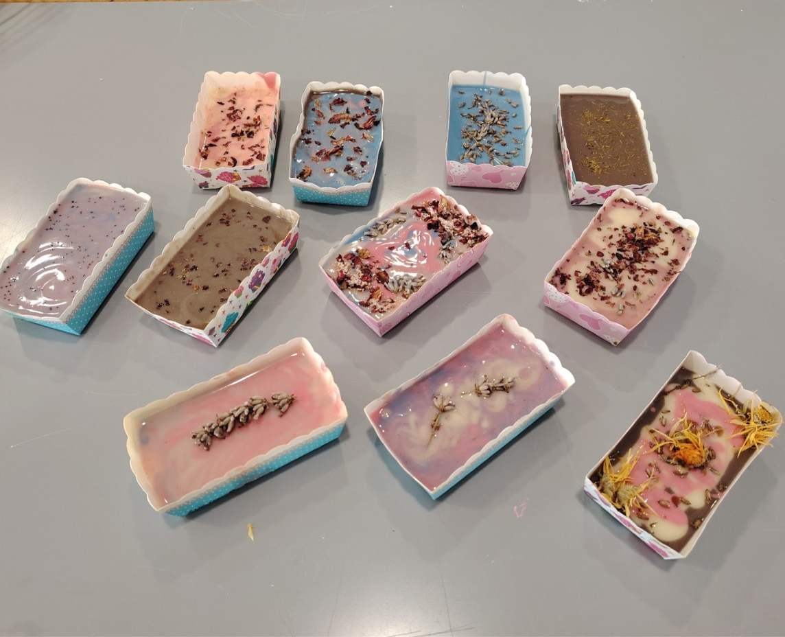 Finalmente, los y las alumnas han creado sus propios jabones, aderezándolos con flores secas, semillas, aceites esenciales, etc.