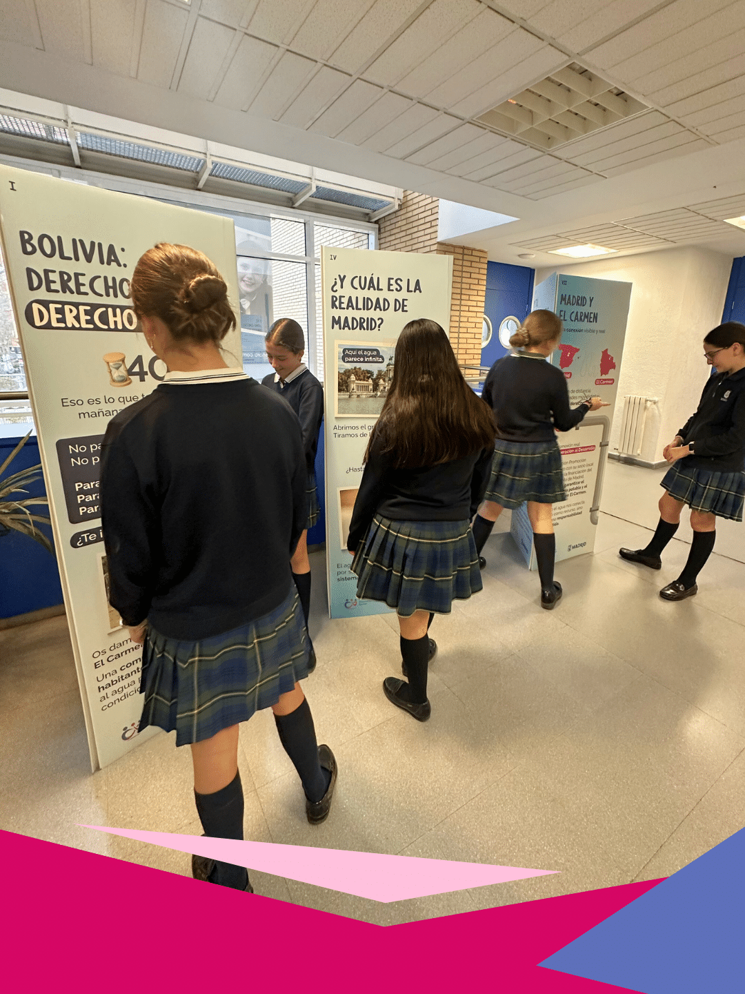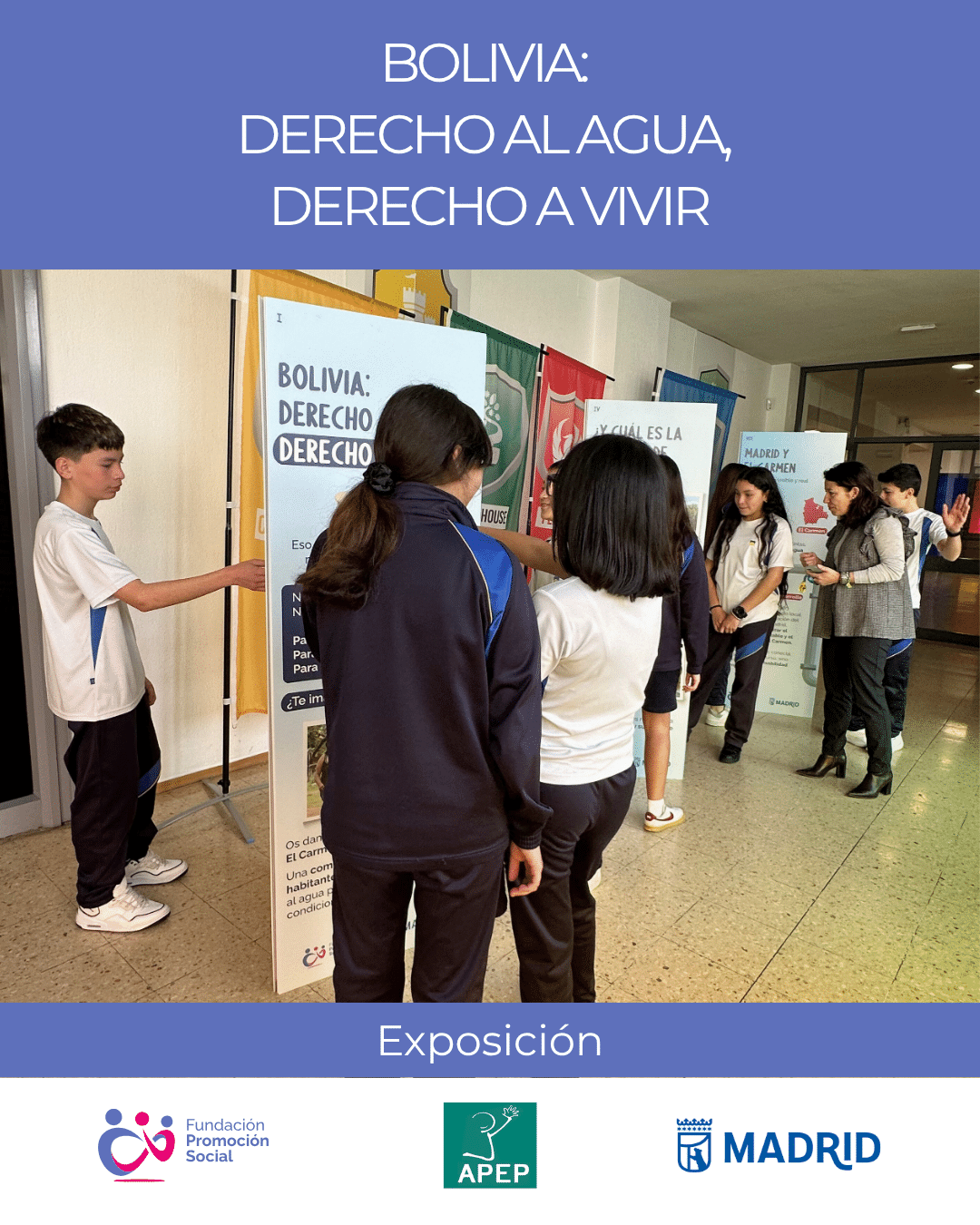 Las sesiones de sensibilización se vieron completadas con una exposición itinerante que también ha recorrido estos centros educativos, en los que ha permanecido varios días para que sus estudiantes y docentes pudieran visitarla y conocer más de cerca la realidad que nos une a Madrid y Bolivia en torno al agua.