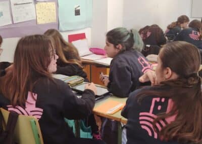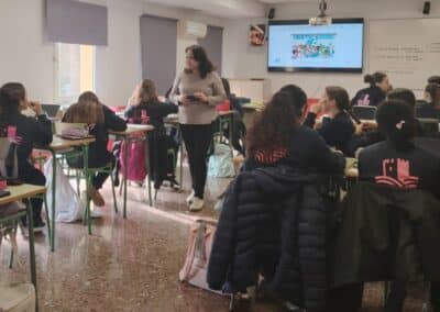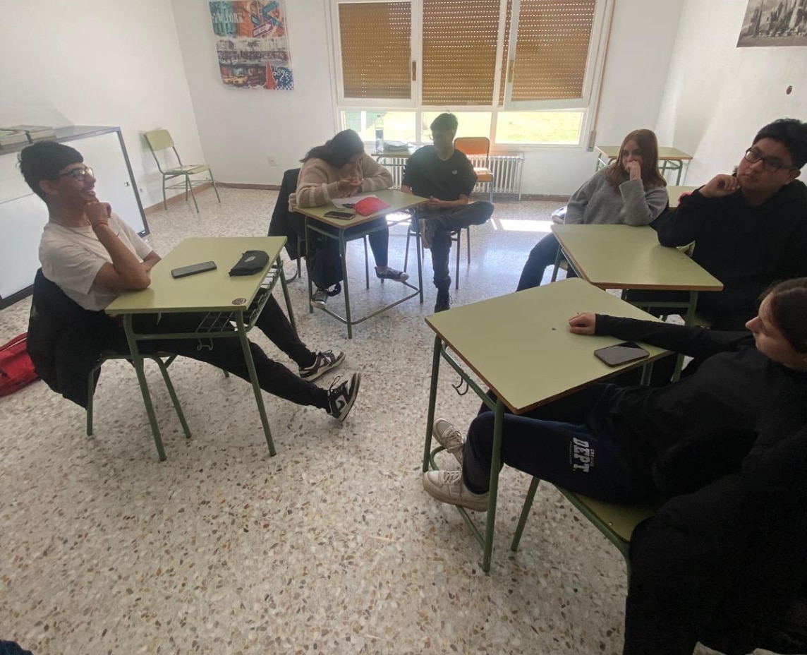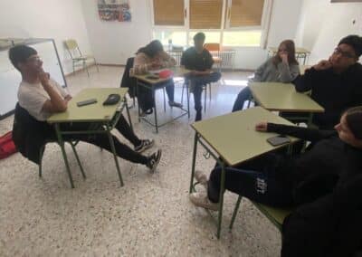 Uno de los momentos más determinantes del taller ha consistido en la realización de una dinámica grupal de mapeo del entorno, en la que el alumnado ha identificado los problemas y desafíos presentes en su comunidad. Partiendo de este análisis, se ha trabajado en la búsqueda de soluciones desde lo local, poniendo el foco en acciones con impacto real en el entorno cercano. Para ello, se ha utilizado de forma activa el Banco de Recursos del proyecto, que ha facilitado la detección de necesidades sociales, la identificación de ámbitos de intervención y la contextualización de las propuestas.