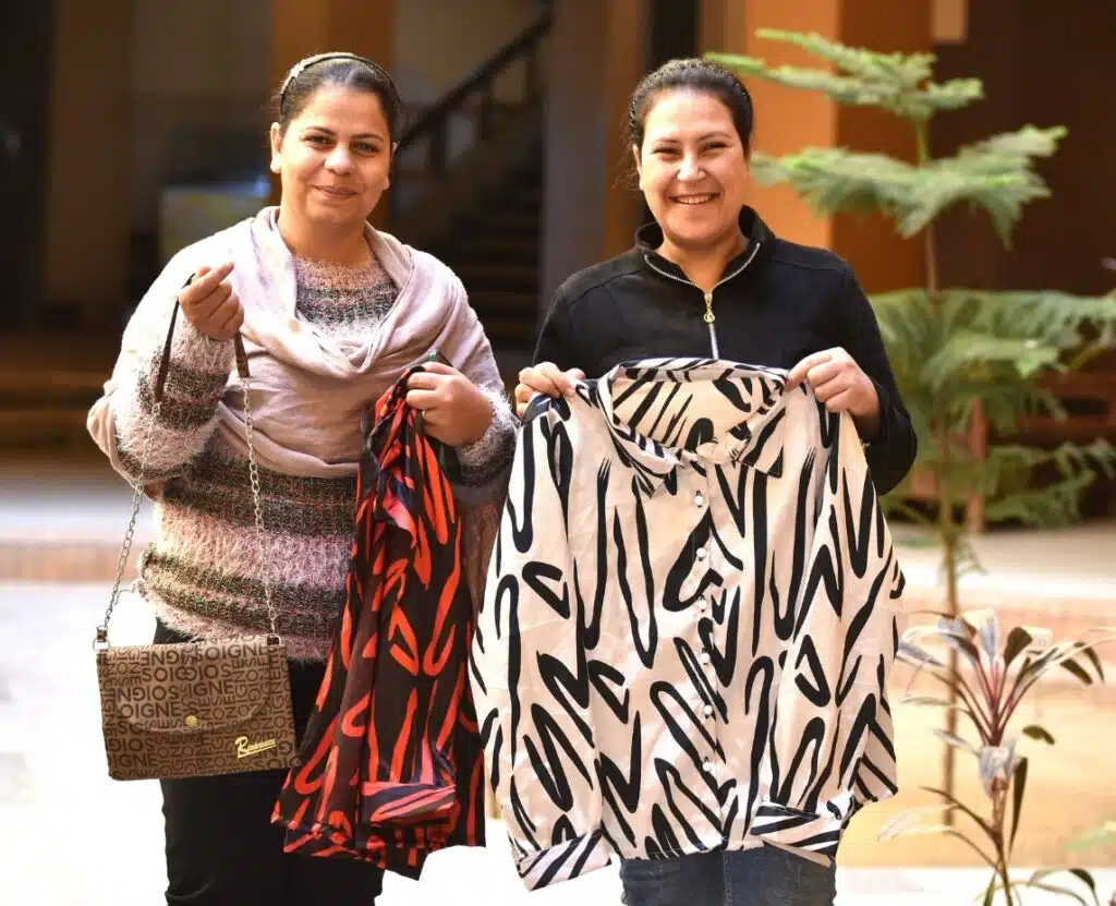 Por su parte, Mariam Mamdouh Youssef (34 años y 3 hijas) se vio abocada a una difícil situación económica personal y familiar cuando, por razones de salud, tuvo que abandonar su anterior trabajo en una farmacia. Sin embargo, gracias a su participación en el programa de capacitación pudo aprender y adquirir rápidamente técnicas avanzadas de costura y formación en reciclaje, creando nuevas prendas y otros objetos textiles a partir de ropas viejas y retales. Su esfuerzo por aprender y su capacidad creativa le hacen sentir orgullosa de su trabajo y sus creaciones, además de comenzar a recibir pedidos. De cara al futuro, Mariam confía en poder ampliar su proyecto de sastrería para crear más productos y, así, seguir contribuyendo a mejorar la calidad de vida de su familia y el futuro de sus hijas.