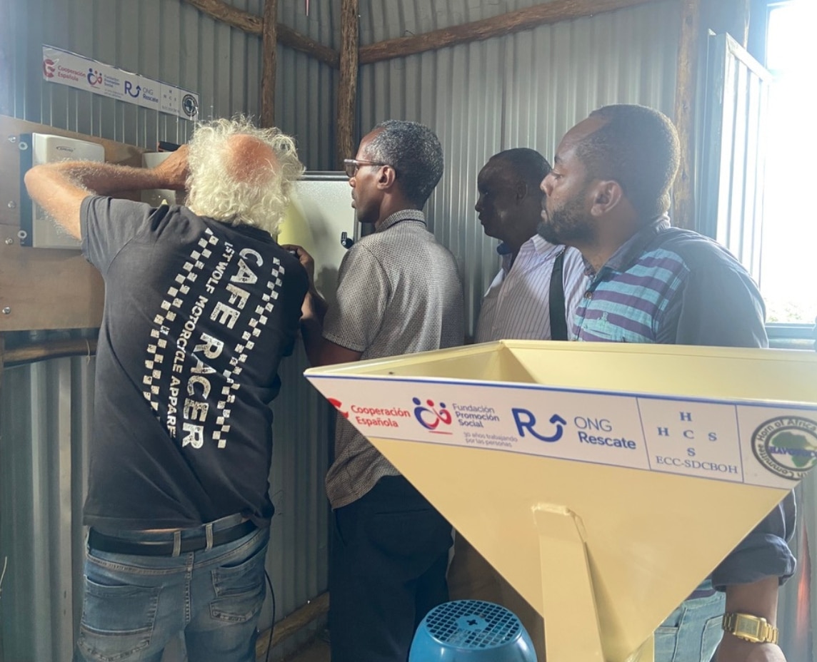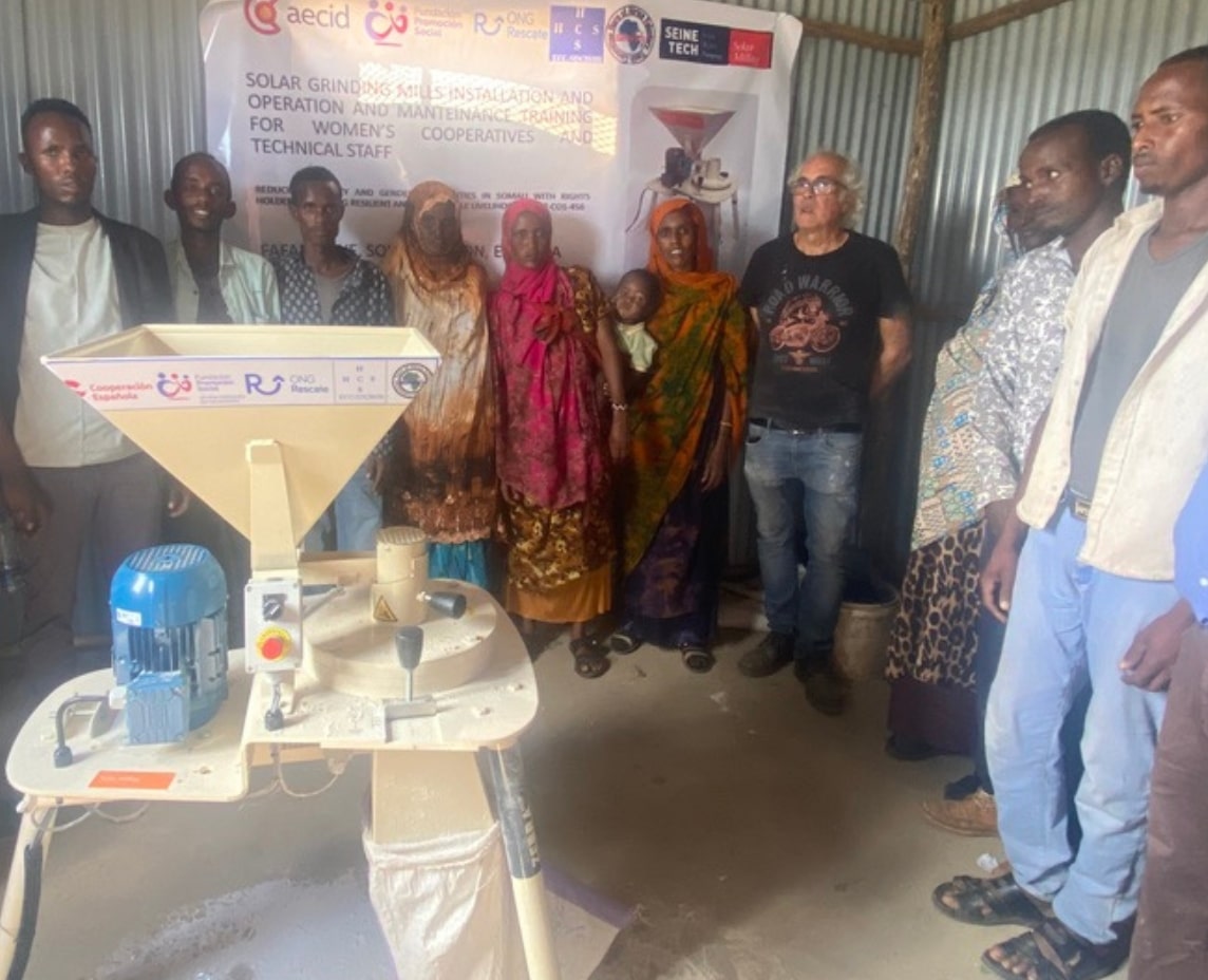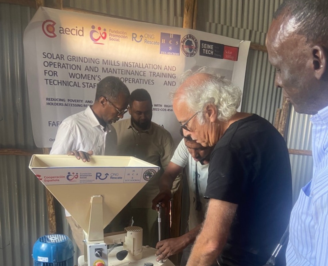 El pasado mes de octubre, participamos en el montaje y la instalación de seis molinos solares para la molienda de cereales en la Región Somalí de Etiopía. Esta era una de las actividades clave previstas en el marco del convenio que estamos implementando junto a ONG Rescate, con nuestros socios locales ECC-SDCO y HAVOYOCO, y con el apoyo financiero de la AECID.