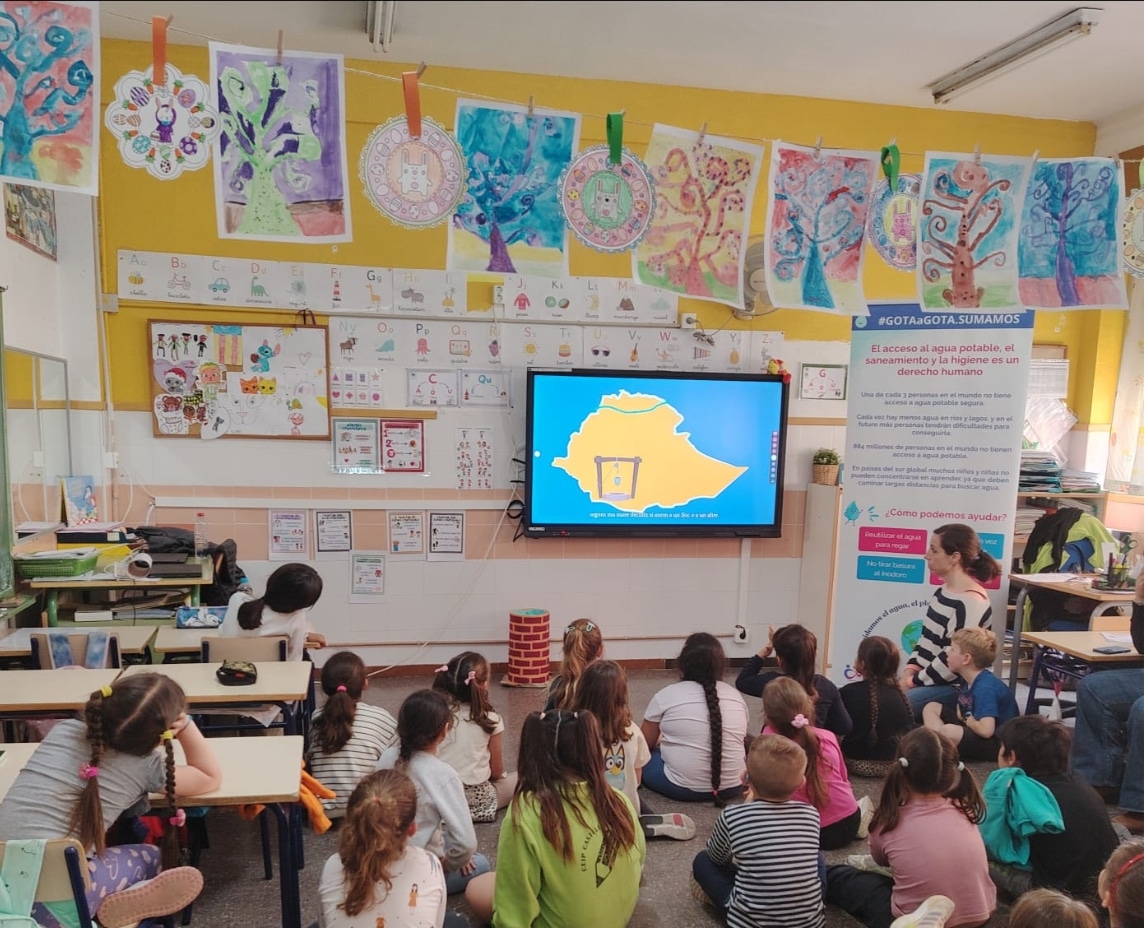 En esta actividad, han participado 59 niños y niñas de 1º y 2º de Primaria, con los que hemos tenido la oportunidad de conversar acerca de las consecuencias del cambio climático y la problemática del acceso al agua en algunos países del Sur Global.