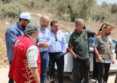 El pasado 27 de agosto tuvo lugar la reunión de seguimiento de nuestro convenio en Palestina, financiado por la AECID y ejecutado en colaboración con PARC y RWDS. La jornada incluyó una visita de campo a distintas localidades de la gobernación de Jenín para conocer de primera mano los progresos alcanzados. La delegación estuvo compuesta por Jesús Tomé (AECID), Yacoub Tahhan (FPS), Jamil Abdelhadi, Munjed Abu Jaish, Lina Johary y Farah Baghdadi (PARC), así como Ruba Daas y Haneen Zaidan (RWDS).