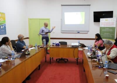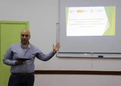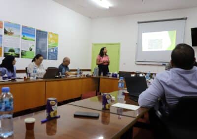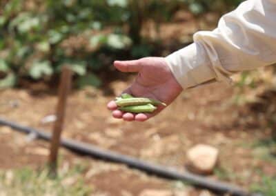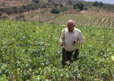 Posteriormente, la delegación visitó varios caminos agrícolas rehabilitados y parcelas en producción, constatando los avances logrados en términos de accesibilidad y aumento de superficie cultivada. Más tarde, en Al-Zababdeh, los asistentes recorrieron el Agroacelerador de PARC, donde se presentaron iniciativas clave: el banco de semillas locales, que preserva y distribuye variedades palestinas en riesgo de desaparición; los invernaderos experimentales, destinados tanto a la recuperación de especies autóctonas de tomates y sandías como a la introducción de nuevas hierbas medicinales; y los programas de formación y mentoría dirigidos a jóvenes y mujeres, que fomentan el agroemprendimiento y la innovación tecnológica.