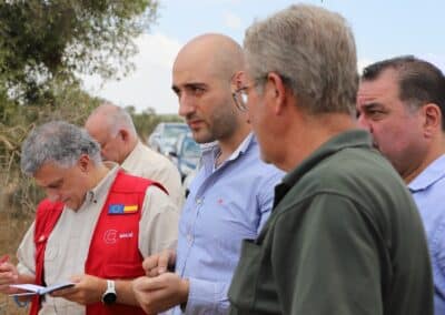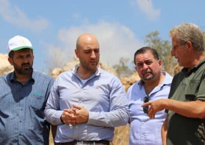 La jornada comenzó en el Consejo Local de Meselyeh, donde la delegación fue recibida por el director del consejo y miembros del Comité de Protección Comunitaria (CPC). En un ambiente cordial, los representantes locales expusieron cómo el convenio está teniendo un impacto directo en la vida de la población. Se destacó especialmente la mejora de la movilidad de agricultores y del acceso a mercados gracias a la rehabilitación de caminos agrícolas, los resultados de la Competición Golden Crop, que ha favorecido la diversificación de cultivos como uvas y olivos, y la importancia de la planta de tratamiento de aguas, que contribuye a optimizar los recursos hídricos en un contexto de escasez. Jesús Tomé mostró especial interés en conocer el funcionamiento de esta planta, y los responsables locales detallaron cómo está ayudando a los agricultores de la zona.
